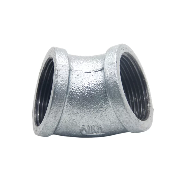 بيتمنتجاتتجهيزات أنابيب الحديد القابلة للطرقتجهيزات الأنابيب المجلفنةحديد مجلفن قابل للطرق كوع 45 درجة